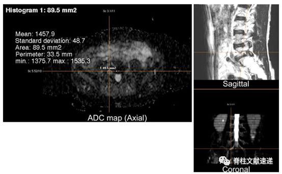 图注:基于冠状面和矢状面图像信息,神经根轴向平均ADC值。