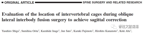 3. Shiga Y , Orita S , Inage K , et al. Evaluation of the location of intervertebral cages during oblique lateral interbody fusion surgery to achieve sagittal correction[J]. Spine Surgery & Related Research, 2017, 1(4):197-202.
