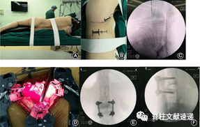 图示:(A) - (C)术前定位和目标水平确认。(D)手术野的暴露。(E)、(F)术后图像所示。