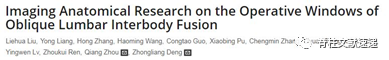 2.Liu L , Liang Y , Zhang H , et al. Imaging Anatomical Research on the Operative Windows of Oblique Lumbar Interbody Fusion[J]. Plos One, 2016, 11(9):e0163452.