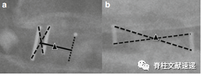 图注:单节段腰椎前凸的测量。