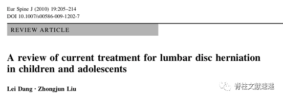 1. Dang L, Liu Z. A review of current treatment for lumbar disc herniation in children and adolescents[J]. European Spine Journal, 2010, 19(2): 205-214.