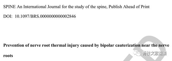 文献:预防神经根附近使用双极烧灼引起神经根热损伤