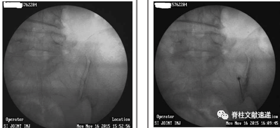 6.1 俯卧位,常规消毒,定位。以目标骶髂关节为中心透视。