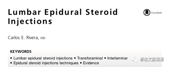 1. Rivera CE. Lumbar Epidural Steroid Injections. Phys Med Rehabil Clin N Am. 2018 Feb;29(1):73-92. doi: 10.1016/j.pmr.2017.08.007. PMID: 29173666.