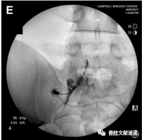 1.4.穿刺位置良好后,抽吸测试,若无血液和脑脊液,可行造影剂观察(上图E),再行局麻药物注入,观察症状缓解情况。
