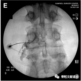 1.3.透视正位,针尖位于椎弓根的外下缘(上图C),透视侧位,针尖紧贴椎弓根下方(上图D)。
