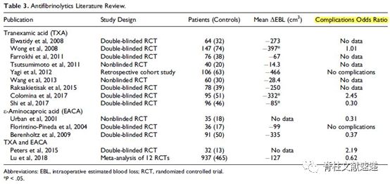 图注:抗纤溶药物文献综述,并发症比例很低(黄色标注)。