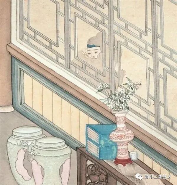 首先,这位清代画家在绘画上表现出的精湛的技艺自不必说,其所作的《窥窗见鬼图》,还有一个值得细说的妙处,即画家对“故事”的领悟,以及这种“领悟”在画作“细节”上的体现。