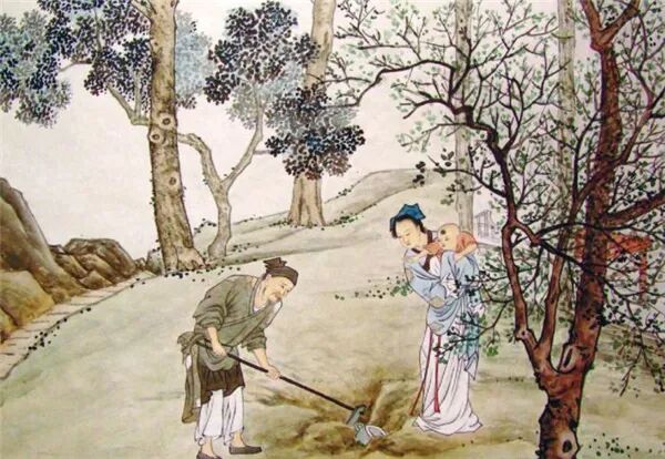 “埋儿奉母”讲的是什么呢?讲的是一个叫郭巨的男子,在父亲去世以后,因家产大多分给了弟弟,自己又要奉养母亲,于是过得十分艰难。而他的母亲因为心疼孙子,经常将吃食节省下来给三岁的孙子。而郭巨觉得母亲这样做会挨饿,是“不孝”,便和妻子商量一番,觉得儿子以后富裕了可以再生养,但是母亲却是唯一的,所以为了尽孝,他们准备将儿子挖坑埋掉。但挖坑的时候挖到了黄金,黄金上面写着“天赐孝子郭巨,官不得取,民不得夺”,夫妻二人拿到了黄金,从此过上了富裕的生活。