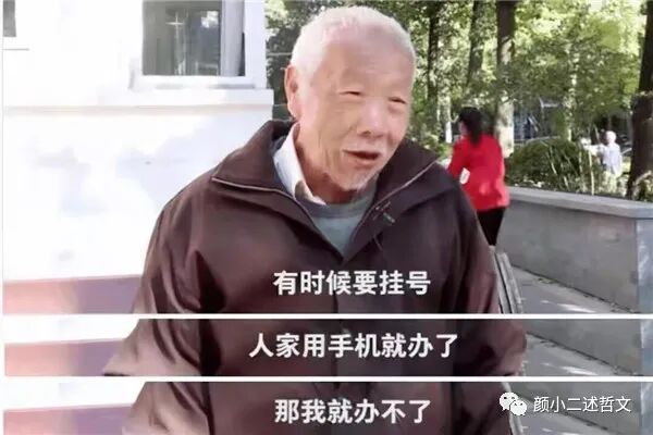 但是,初读这句话时实在不理解,为何六十岁后会被世界“厌倦”,直到颜小二线上线下目睹了许多老人面对电子化智能社会里的“手足无措”,忽而对这句话有了些感受:跟不上世界“步伐”的老人,常常被世界“拒之门外”。