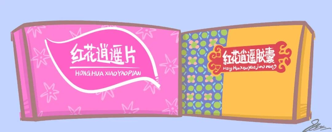 “逍遥家族”有四位兄弟,大家最熟的就是“疏肝健脾”的逍遥丸,其余三位分别为“去火”能力强的丹栀逍遥丸(又称加味逍遥丸,有中成药);“补血”能力强的黑逍遥丸(逍遥丸加熟地黄,暂无中成药)和下面要着重介绍的擅于“活血祛痘”的红花逍遥片。