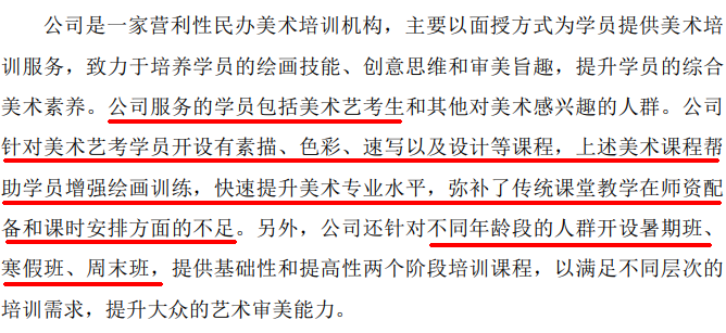 (2)报告期内发行人子公司富阳文创、义乌老鹰均曾开展配套文化课培训业务。富阳文创于2019年6月停止开办文化课培训,义乌老鹰于2019年12月停止开办文化课培训业。