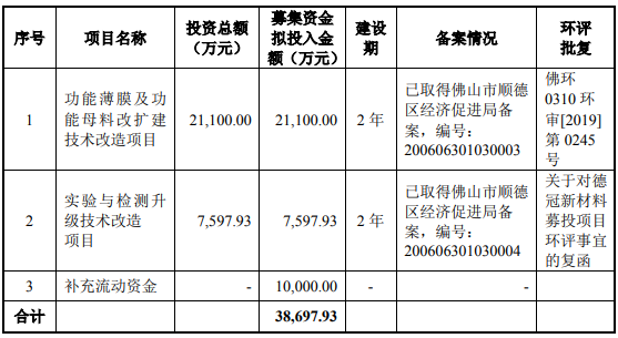 广东德冠薄膜新材料股份有限公司主要从事功能薄膜、功能母料的研发、生产与销售,为客户提供功能性双向拉伸聚丙烯薄膜和双向拉伸聚乙烯薄膜基材、功能母料,主要产品包括无胶膜、标签膜、消光母料等。