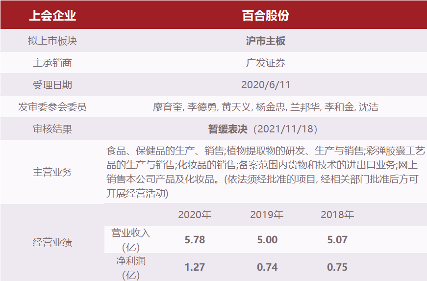 值得一提的是,此次并非百合股份首次冲击A股,公司于2015年5月报送了辅导备案申请材料,2019年6月辅导“结业”并加入IPO的队伍中,此时公司以创业板上市为目的地,2019年10月25日宣布终止审查。