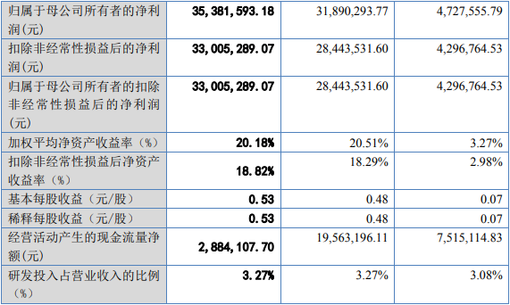 发行人最近三年的营业收入分别为 13,599.79 万元、17,776.36 万元和20,208.89 万元,最近三年研发投入分别为 2,269.73 万元、2,401.01 万元和 2,493.12万元,累计研发投入 7,163.86 万元,占最近三年累计营业收入的比例为 13.89%。