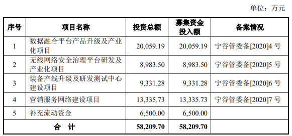森根科技本次拟公开发行新股数量不超过 2,000 万股,公司股东不公开发售股份,公开发行的股份占发行后公司总股本的比例不低于25%,拟融资金额5.82亿元,主要用于投资如下项目: