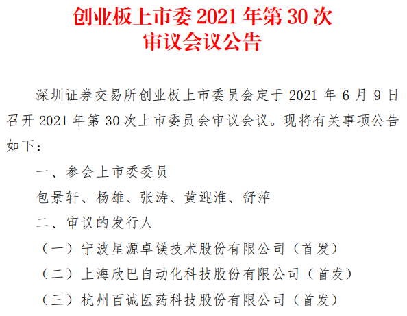 欣巴科技申请上市2020年11月4日获创业板受理,2021年6月2日深圳证券交易所上市审核中心发布公告: