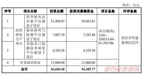 本次发行不超过1,667.00万股,占发行后总股本的比例不低于25%,拟融资金额5.43亿元,公司本次发行募集资金全部用于主营业务相关项目,具体如下: