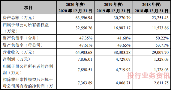 报告期内,公司营业收入分别为 29,007.70 万元、38,303.28 万元和 64,903.68 万元,扣除非经常性损益后归属于母公司所有者的净利润分别为 2,611.75 万元、 4,066.71 万元和 7,363.89 万元。