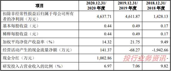 申报材料显示:报告期各期,发行人营业收入分别为112,543.15万元、253,116.38万元、323,639.49万元和248,697.14万元,扣除非经常性损益后归属于母公司股东的净利润分别为13,148.55万元、25,924.99万元、17,294.08万元和9,114.29万元,2019年营业收入继续增长但净利润反而下降。2020年经审阅的营业收入为373,778.46万元,扣除非经常性损益后归属于母公司股东的净利润为13,365.84万元,延续了2019年的收入增长但利润下滑的态势。发行人预计2021年1-3月营业收入同比增长48.07%至92.50%,预计扣除非经常性损益后归属于母公司股东的净利润同比增长262.51%至597.14%。发行人称受带量采购中标药品售价大幅下降、研发费用与管理费用大幅增长等影响导致2019年净利润下降。
