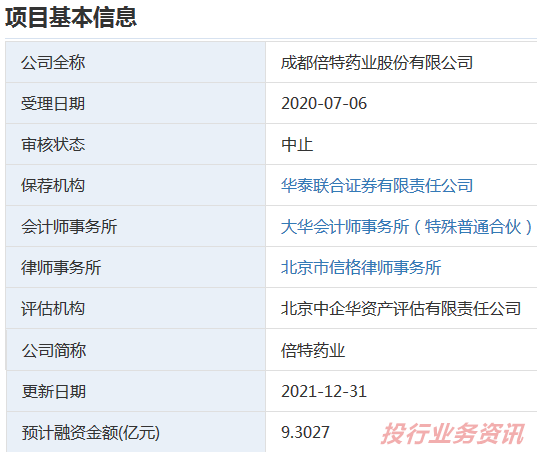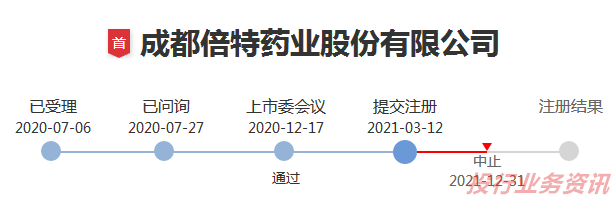 2022年1月4日,你公司和保荐机构华泰联合证券有限责任公司提交了《成都倍特药业股份有限公司关于撤回首次公开发行股票并在创业板上市申请文件的申请》(成倍药字[2021]475号)和《关于撤回成都倍特药业股份有限公司首次公开发行股票并在创业板上市申请文件的申请》(华泰联合字[2021]571号),主动要求撤回注册申请文件。