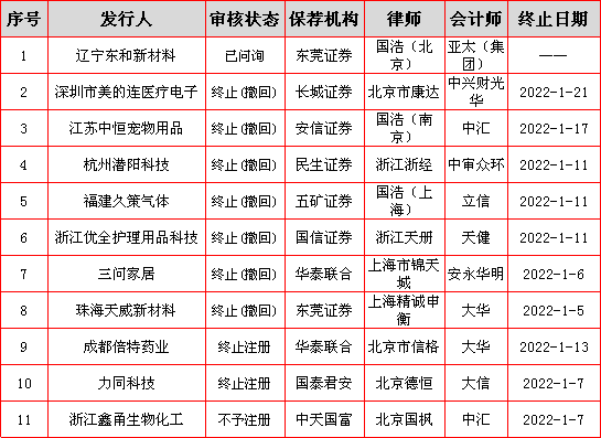 2022年创业板IPO已终止11家