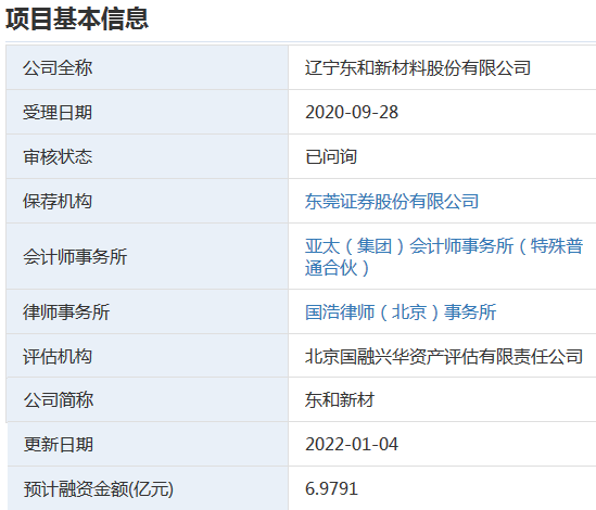 2020年9月28,东和新材获创业板受理,目前已经过两轮问询。
