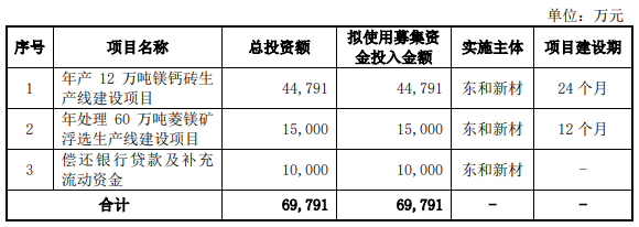 本次公开发行股票的数量为不超过4852万股,且本次公开发行股票数量不低于发行后总股本的25%,预计融资金额6.9791亿元,本次发行募集资金计划用于下列项目: