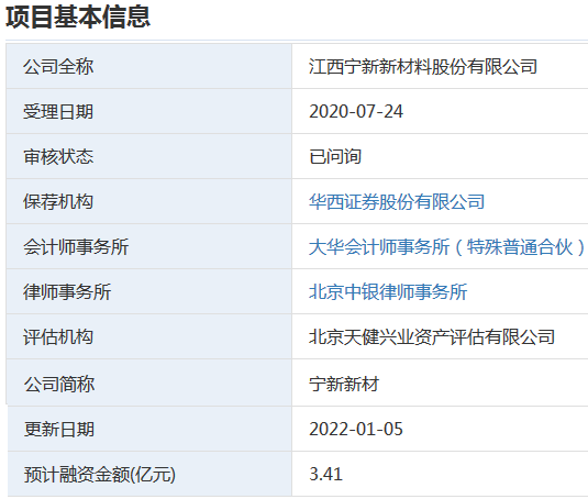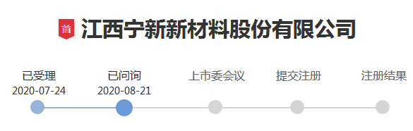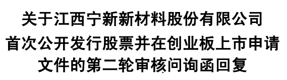 2020 年 7 月 24 日,公司收到深圳证券交易所出具的《关于受理江西宁新新材料股份有限公司首次公开发行股票并在创业板上市申请文件的通知》(深证上审[2020]450 号)。后续公司对深交所审核问询分别进行了回复,具体情况见《江西宁新新材料股份有限公司关于申请股票首次公开发行并上市进展公告》。
