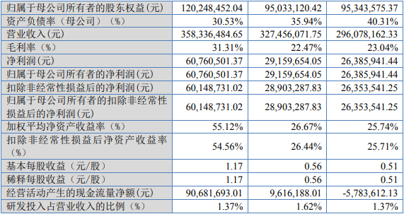 2018年至2020年,公司实现营业收入分别为2.96亿元、3.27亿元、3.58亿元;净利润分别为2638.59万元、2915.97万元、6076.05万元。