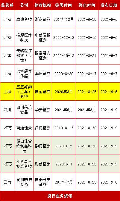 本周有14家公司签署上市辅导协议与备案,其中五五海淘(上海)科技股份有限公司在2021年8月25与国金证券终止上市辅导,当日便于中信建投签署上市辅导协议并备案。