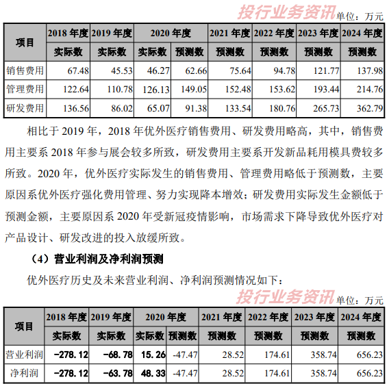 根据康基医疗(09997.HK)招股说明书披露,预计 2020-2024 年,微创手术器械及配件行业平均增速将达到 19.1%,行业规模保持快速增长;康基医疗 2018-2020年销售收入复合增长率为 20.27%;②从优外医疗自身发展情况来看,发行人收购其少数股权时,优外医疗主要产品已研发完成、相继取得欧盟 CE 认证、国内医疗器械产品注册证书并已初步建立营销体系、具备规模化生产能力,考虑到其产品上市初期销售规模较小,但预计通过持续研发、产品改造升级、积极的市场推广、与发行人现有销售团队进行整合后,优外医疗产品销售规模将有较大幅度的提升。