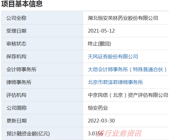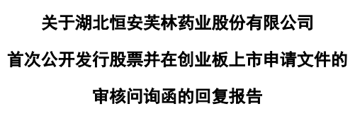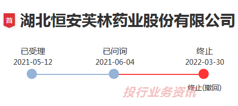 2022年3月28日,湖北恒安芙林药业股份有限公司申请撤回发行上市申请文件,深交所决定终止对其首次公开发行股票并在创业板上市的审核。