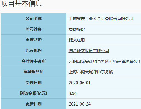 2021年1月14日,你公司和保荐机构国金证券股份有限公司提交了《上海翼捷工业安全设备股份有限公司关于撤回首次公开发行股票并在科创板上市申请文件的申请》(翼捷发[2021]第004号)和《关于撤回上海翼捷工业安全设备股份有限公司首次公开发行股票并在科创板上市申请文件的申请报告》(国金证发[2021]513号),主动要求撤回注册申请文件。