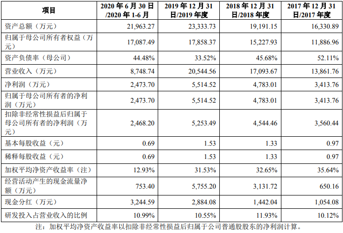 发行人报告期内主要财务数据和财务指标