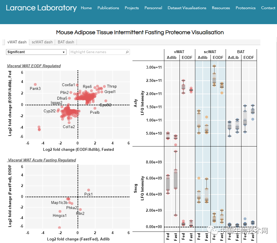 研究人员利用蛋白质组学技术,检测了8500多种位于脂肪沉积物中的蛋白质,并建立了小鼠脂肪组织间歇性禁食期间蛋白质组学分析的可视化网站。