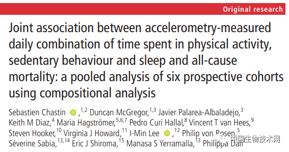 在这项研究中,研究人员使用了来自英国、美国和瑞典的6项前瞻性研究的数据(其中两项研究的参与者全天穿戴腕戴式和髋戴式加速度计)。这些研究提供了日常运动行为与健康之间联合关联的重要数据,总共涉及130239名成年人,平均随访时间为4.3年至14.5年,期间3892人死亡。