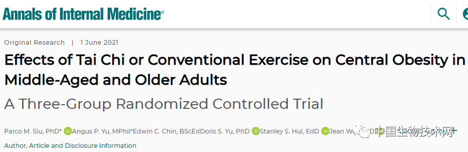 北京时间6月1日,发表在《Annals of Internal Medicine(内科医学年鉴)》(IF=21.32)上的一项最新研究中,来自中国科学院心理研究所魏高峡博士联合美国加州大学洛杉矶分校、香港大学和香港中文大学的研究人员,通过三组随机对照单盲试验发现,太极拳可以有效减少中老年中心性肥胖患有的腰围。
