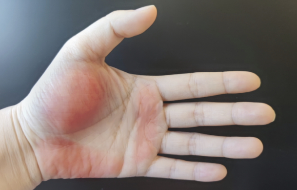 出现肝掌的人,大小鱼际部位,即大拇指的根部位置,会出现充血、泛红的情况,并且通常是片状的泛红。