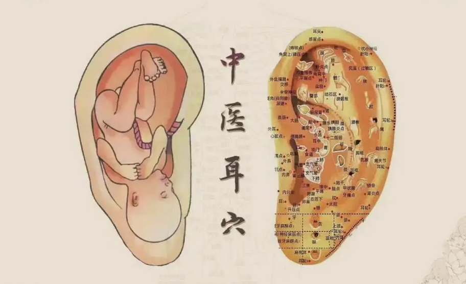 中医“全息论”认为,耳朵也是人体生理功能活动的一个缩影,耳朵上有五脏六腑和各组织器官的反应点,各反应点的排列位置就像一个倒置的胎儿。