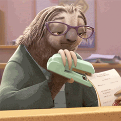 后来我专门找机会观察了一下她的工作,从她接过客户的银行卡到正面反面反复检查卡面约1分钟,然后伸出一根手指,像个从来没学过打字的人一样慢慢的打指令,一不小心打错了重新再来又是两分钟过去了,取完钱验钞机上正反各验两遍,然后自己再数两遍,再给钞票捋捋平,外面的客户着急的站起来让她赶紧,她一下子表现的更慌张,跟客户说你不要吓我,我做错要扣钱的。当客户更来气的时候她逮着机会就哭的梨花带雨,搞得客户把她怎么样了一样。和她搭档时,工作量基本是她的四倍,有她上柜的日子总少不了客户在外面大吵大闹,最后客户都求她了快点办。而她躲在防弹玻璃后面认认真真的以乌龟的速度干活。导致很多年后看到电影《疯狂动物城》里树懒时,我马上想到了她。
