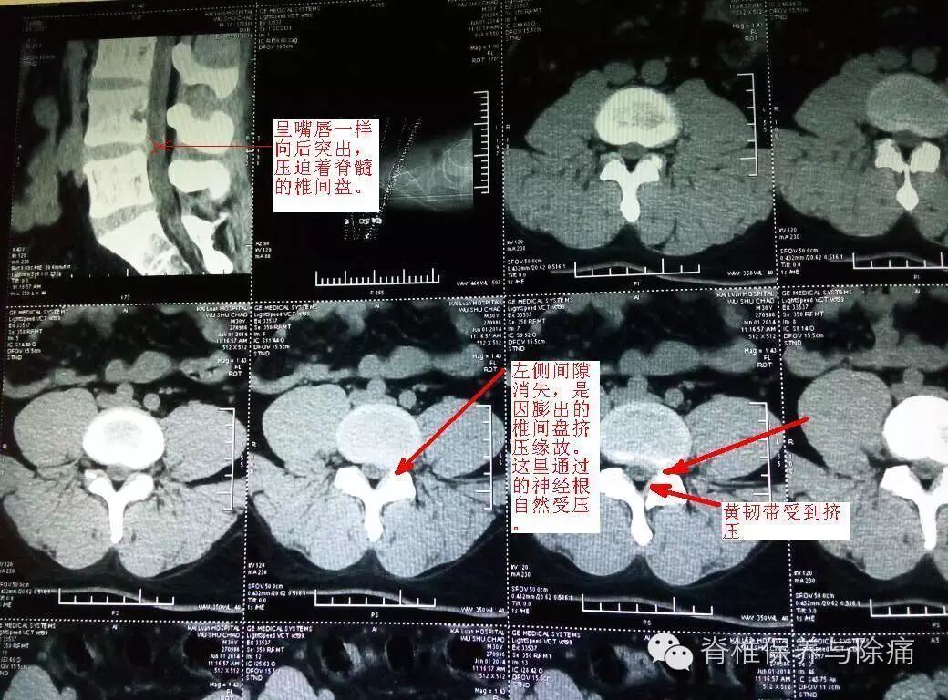 在腰段,腰椎管的两侧部分对椎间盘者称盘黄间隙,平对椎体者称侧隐窝。侧隐窝向下续于椎间孔,腰部较狭窄。第5腰椎椎管呈三叶形者,侧隐窝尤为明显,侧隐窝的前后径通常为3~5mm;若小于3mm,则可认为侧隐窝狭窄;若大于5mm,则肯定不狭窄。盘黄间隙可因椎间盘后突、黄韧带肥厚或关节突增生内聚而缩窄,这时受压迫的是下一位,甚至是下两位的脊神经根。只有在L4~5和L5~S1盘黄间隙才能同时压迫下位神经根硬膜囊外段。由于同序数的神经根并未进入盘黄间隙即转向外出椎间孔,故不受影响,椎间盘突出压迫神经根以L4~5和L5~S1,盘黄间隙处为常见,其压迫方向有从神经根内、外侧或前方向后顶三种,但以后者多见。侧隐窝狭窄,容易产生神经刺激症状。多见于腰椎。产生刺激的来源多是增厚的黄韧带、突出的椎间盘、此处的骨赘(俗称骨刺)