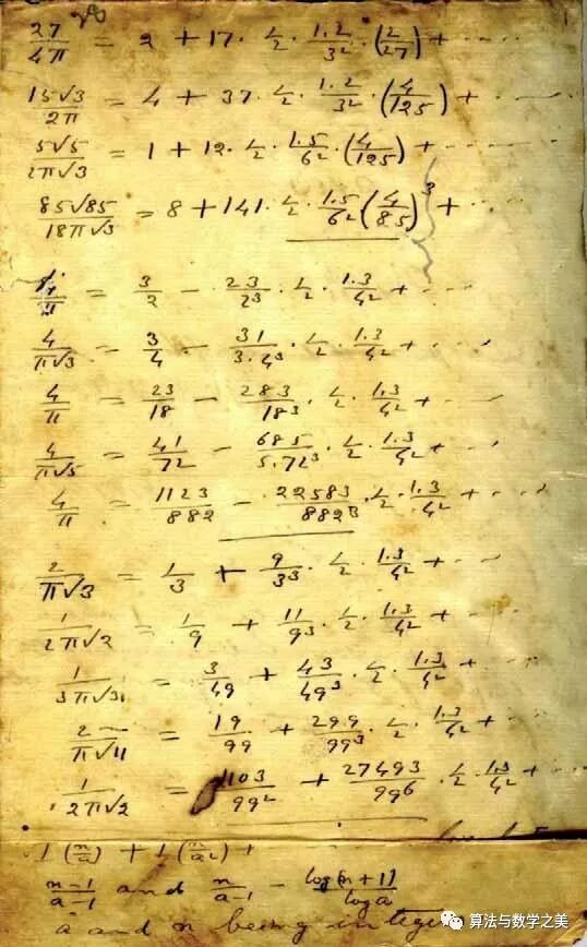 拉马努金短暂的一生留下了一份令人着魔的、深奥的公式和命题,足足有3900多个,这些公式后来神秘地出现在数学的分支数学物理、代数几何等,一直到1997年,才总算是完成了其中的一部分,并整理成5大卷出版。