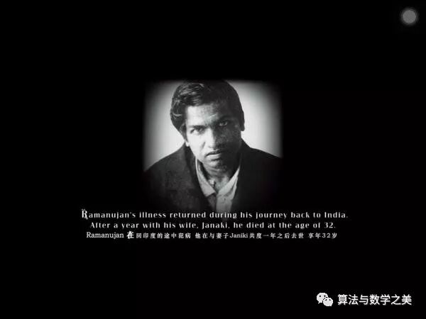 像拉马努金这样的天才,也许正是上帝送给人类的礼物,生年有数,而知识无涯,真理永恒,而正因如此,才要燃烧一生去捕捉永恒的浮光掠影。