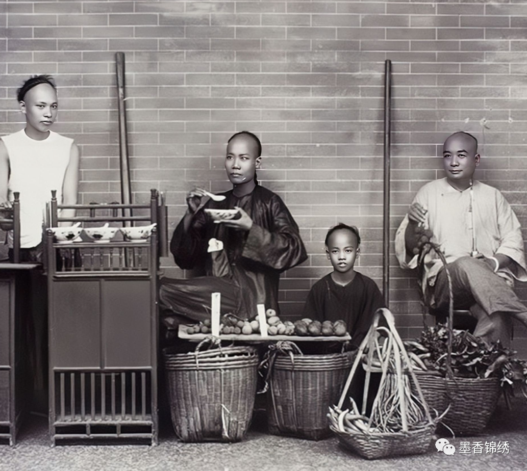 1880年晚清街头的果蔬摊子与小食摊的罕见旧照,古时候的客栈食肆并不算多,而且其客栈食肆内物食费用昂贵不菲,很多生活在底层的寻常百姓根本无情进去享用消费,而彼时路边物美价廉的小食摊则成了穷苦百姓们最喜欢的食肆之地。