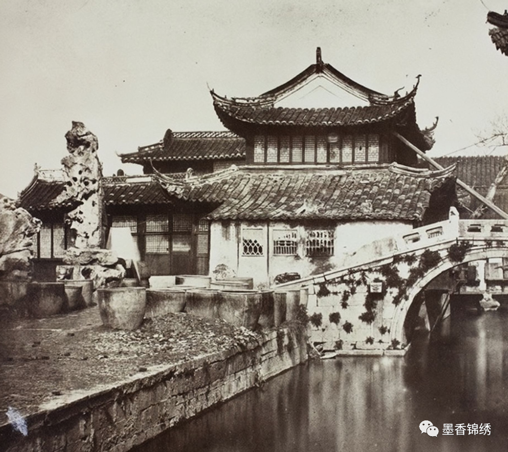 晚清1857年的上海豫园部分残壁断垣的画面旧照,众所周知这豫园曾经是上海老城厢里最为著名的建筑景点,此处既有高山流水的迤逦美景,亦是有精雕细刻的楼台亭阁,可谓是绚丽典雅如同天上宫阙。然而可惜的是在太平运动爆发之时,此处被严重摧毁破坏,很多精美楼阁皆被大火付之一炬。