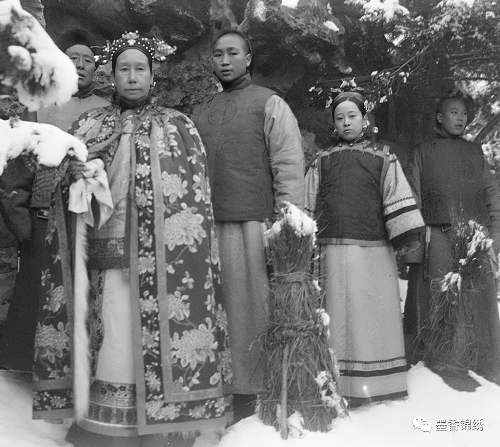 晚清年间的慈禧太后与太监李连英及宫女们的合影旧照,掌事大太监李莲英是慈禧太后晚年时期身边最为信任的宦官,其身份在宫中官居正二品总管太监,还掌管着整个皇宫里的太监与宫女,乃是名副其实的一人之下万人之上的荣誉之主。