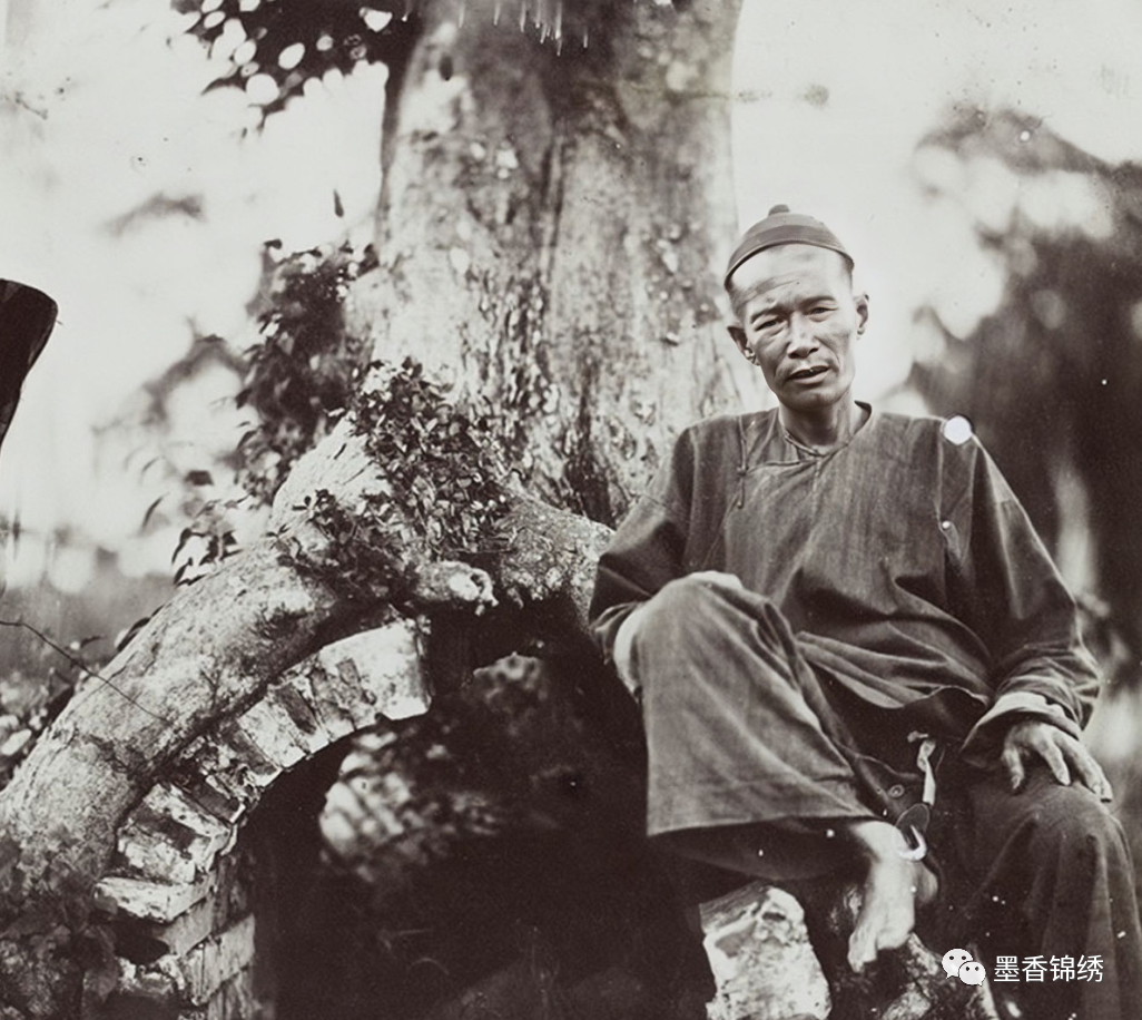 晚清年间上海细林山上一位中年男子赤脚在古墓叹息时的罕见旧照,老照片中的男子穿着长衫衣裤,头上还戴着一顶瓜皮小帽,衣着干净的样子看起来并非穷苦百姓。只是他满脸哀伤叹息,不知为何坐在古墓前久久不曾离去。或许他乃是俗家的修行之人,每到佛教礼节之时便上山悟道打坐。