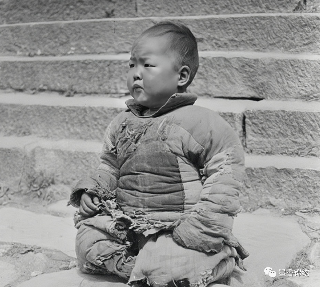 晚清年间一个3岁孩童跪在泰山上乞讨食物的画面旧照,老照片中的孩童或许是因战乱失去了双亲父母,或是家中实在过于贫穷无依,所以不得不在稚嫩之龄出来乞讨求生。